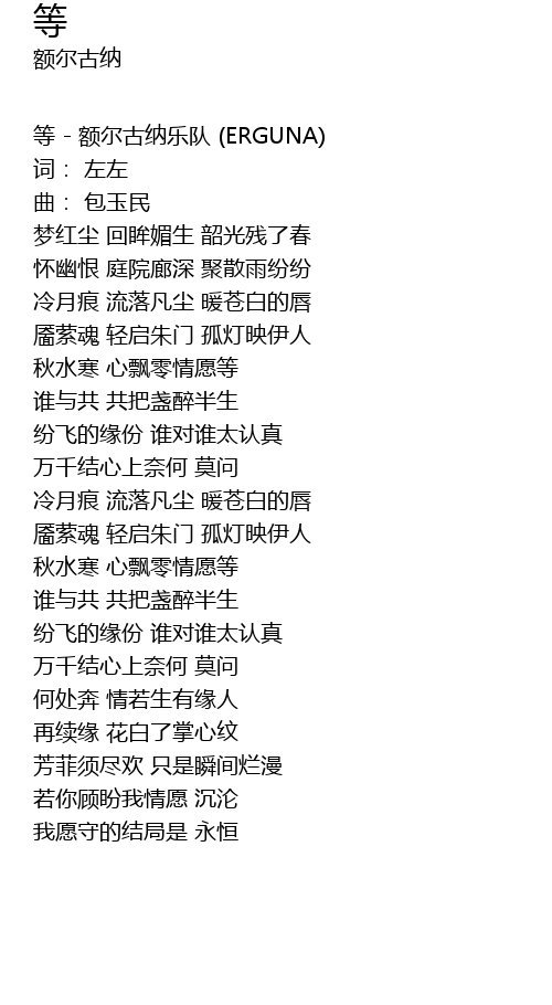 | 等 - 额尔古纳乐队 (ERGUNA) | |