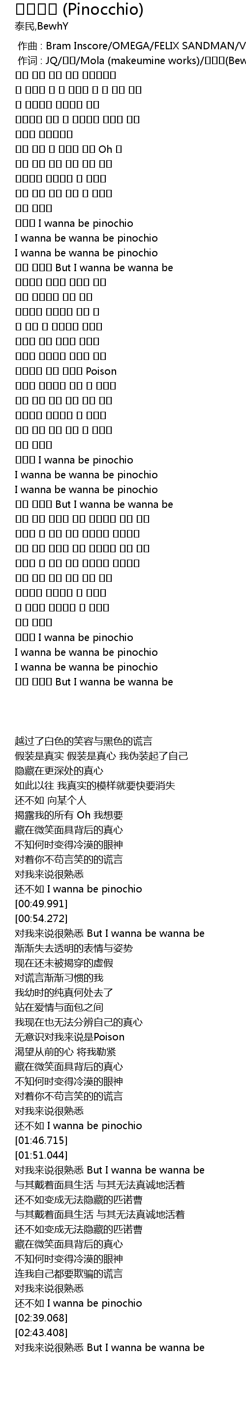 | [00:45.693] | I wanna be pinochio |