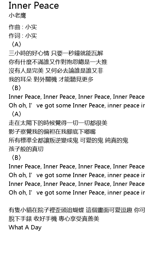 | Inner Peace, Inner Peace, Inner Peace, Inner Peace now | |