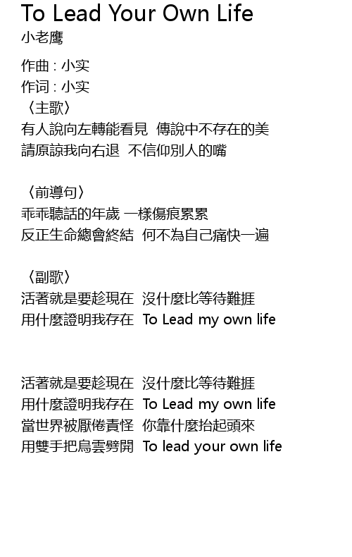 | yòng shén me zhèng míng wǒ cún zài To Lead my own life | |