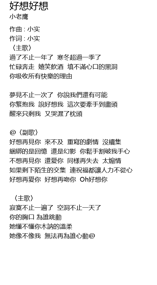 | 好想再愛你 好想再吻你 Oh好想你 | |