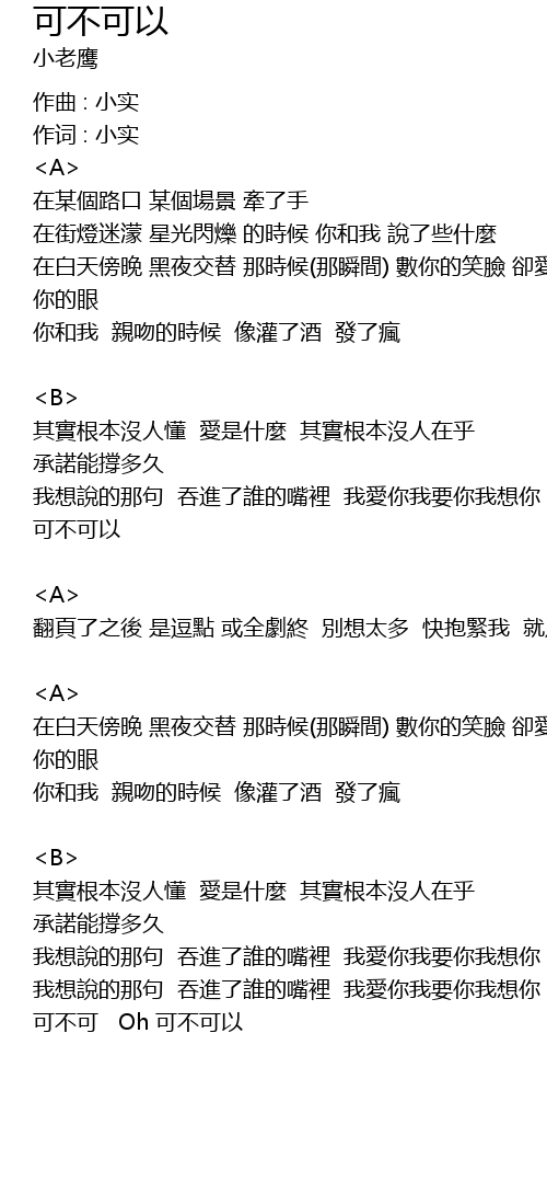| 我想說的那句 吞進了誰的嘴裡 我愛你我要你我想你 可不可以 | |