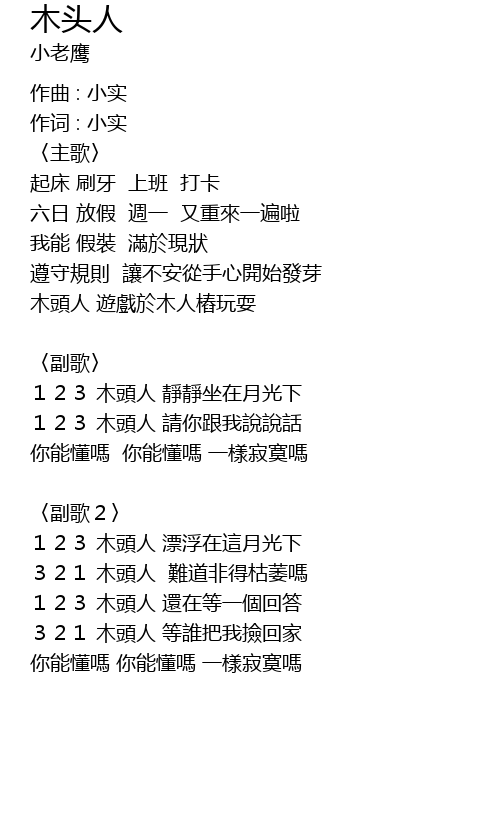 | mù tóu rén qǐng nǐ gēn wǒ shuō shuō huà | |