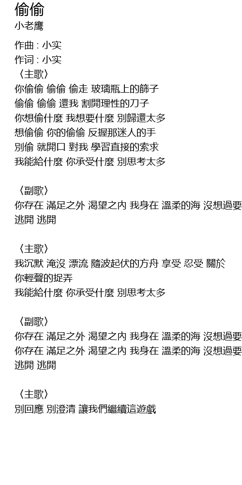 | 偷偷 偷偷 還我 割開理性的刀子 | |