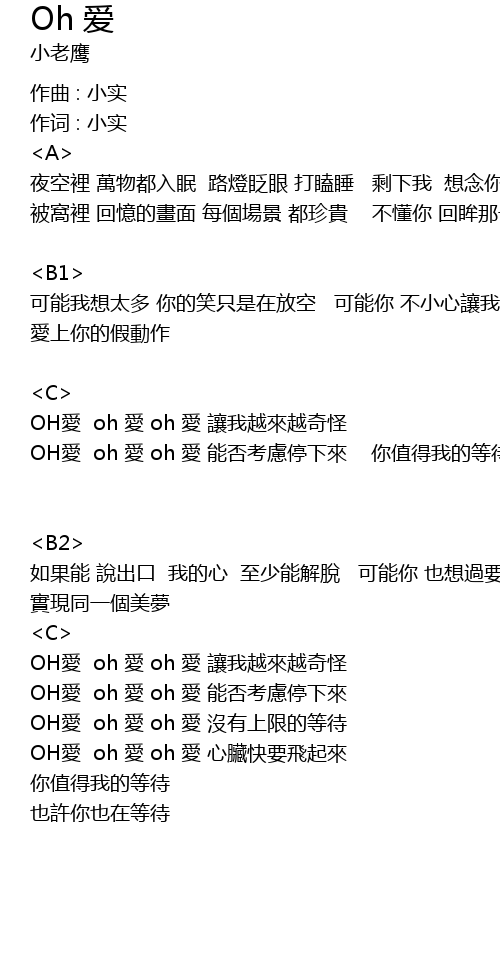 | OH愛 oh 愛 oh 愛 能否考慮停下來 你值得我的等待 | |