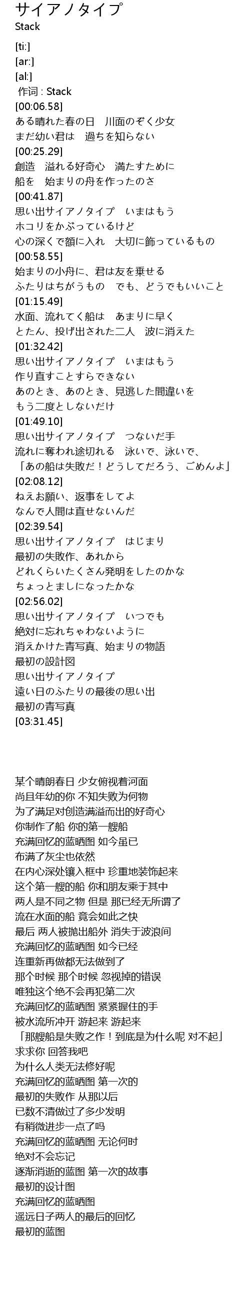 | [02:56.14] | 思い出サイアノタイプ いつでも |