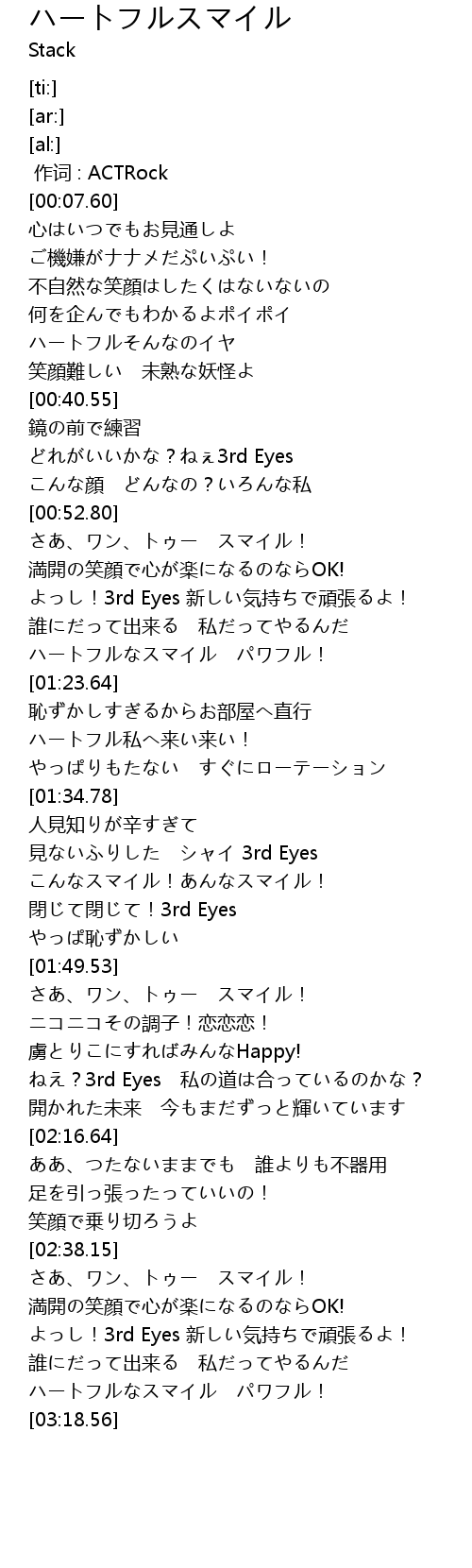 | [03:08.21] | ハートフルなスマイル パワフル! |