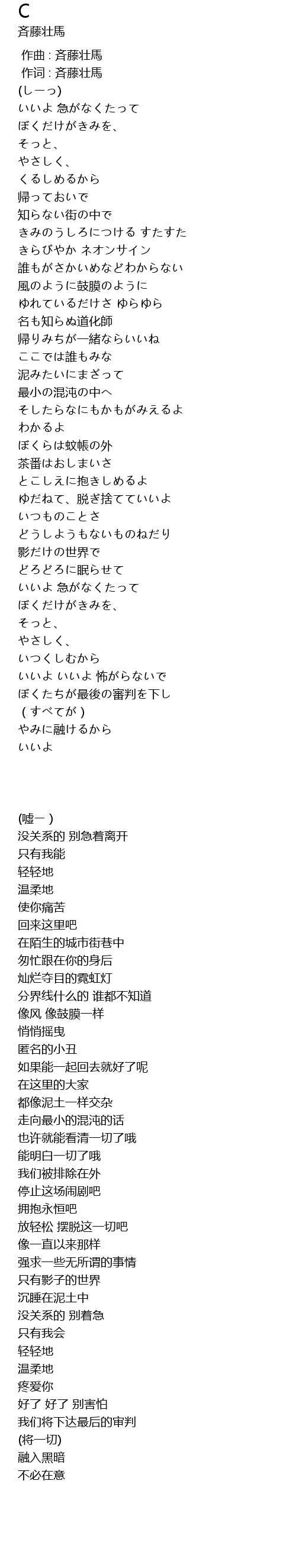 | [00:00.011] | 作词 : 斉藤壮馬 |