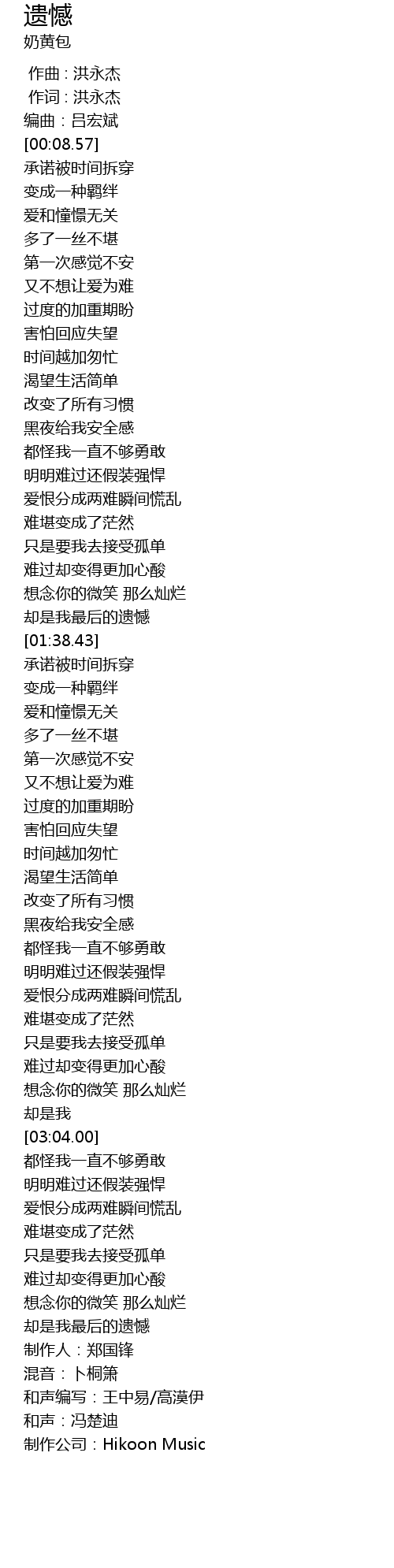 | [03:41.38] | 和声编写:王中易/高漠伊 |