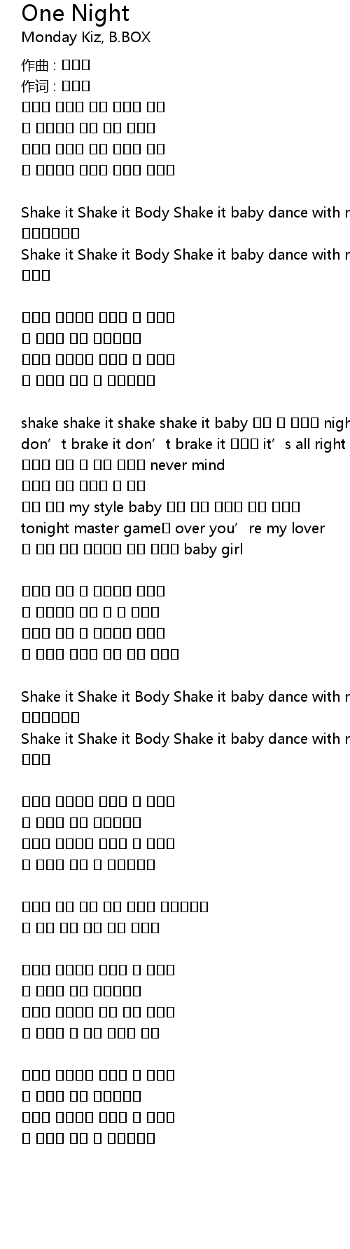shake shake it shake shake it baby 원해 나 화끈한 night |