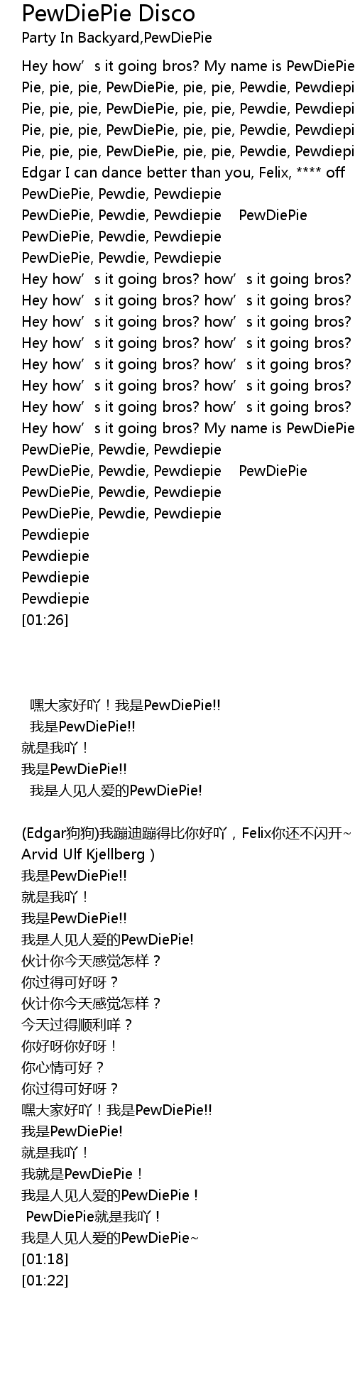 | [00:26] | PewDiePie, Pewdie, Pewdiepie PewDiePie |
