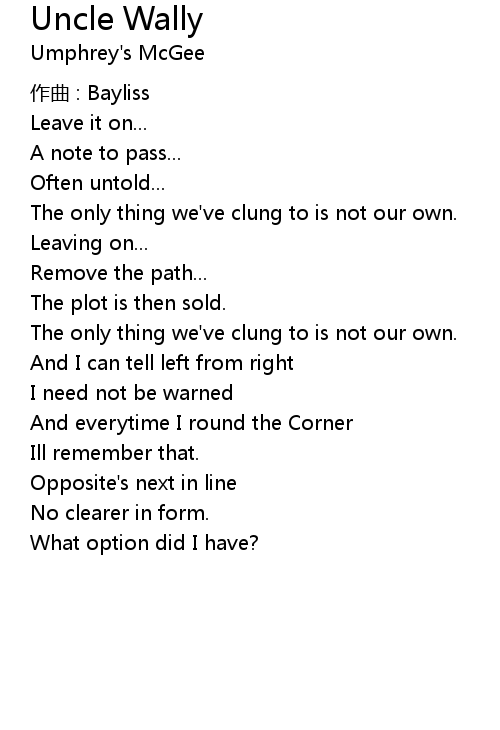 | Song | Uncle Wally |
