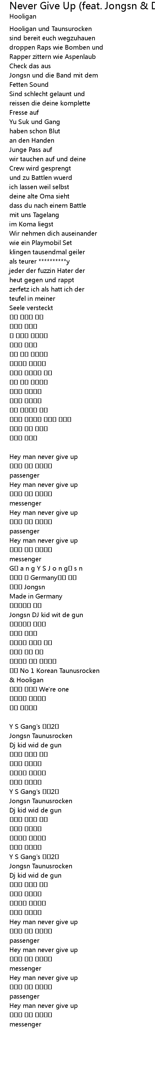 | Song | Never Give Up (feat. Jongsn & DJ Kid wid gun .. |