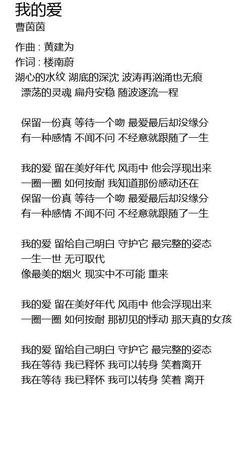 | 我在等待 我已释怀 我可以转身 笑着 离开 |