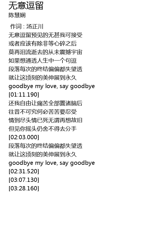 | [00:13.160] | 无意逗留预见的无甚我可接受 |