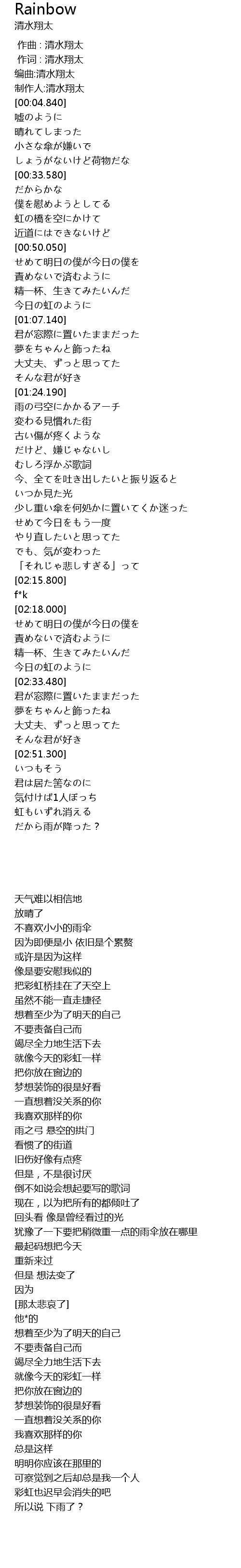 | [00:01.460] | 编曲:清水翔太 |
