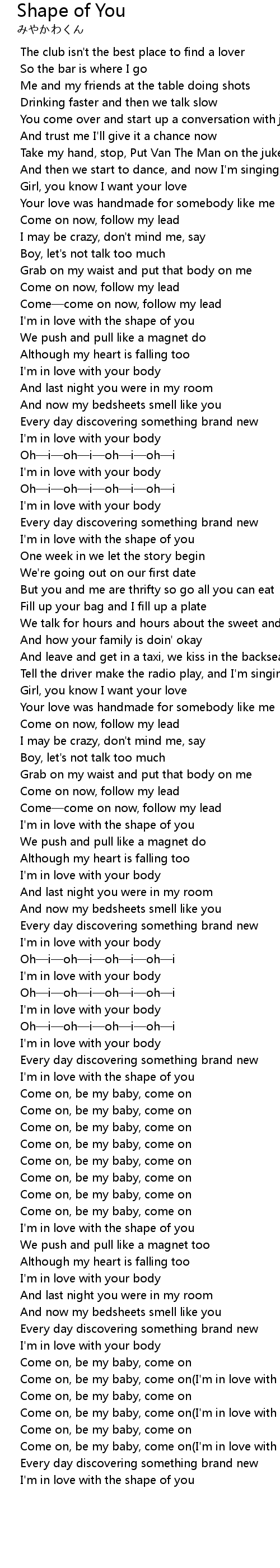 | [03:43.347] | Come on, be my baby, come on(I'm in love with your body) |
