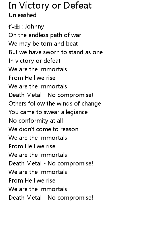 | Song | In Victory or Defeat |