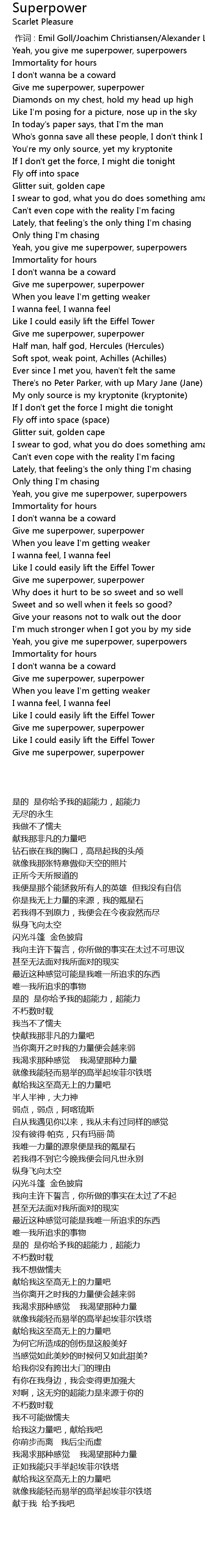 | [00:00.21] | Yeah, you give me superpower, superpowers |