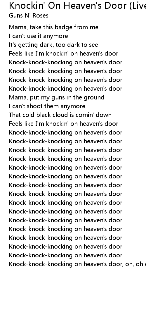 Knock-knock-knocking on heaven's door, oh, oh oh yeah |