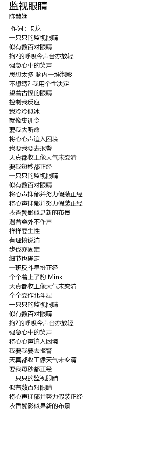 | [00:15.58] | 一只只的监视眼睛 |