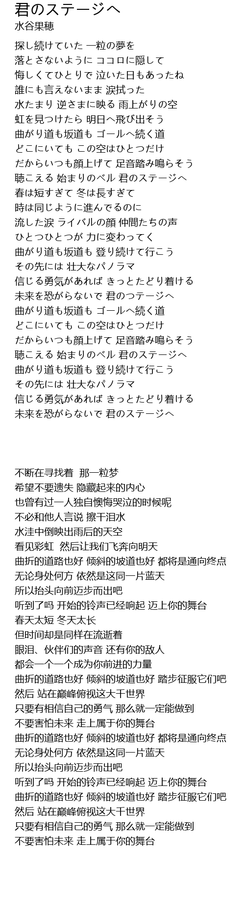 | [03:45.52] | 未来を恐がらないで 君のステージへ |