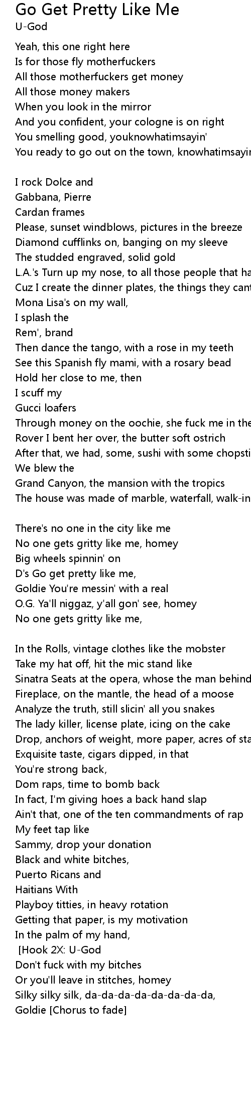 She had the red hots, had me coming out my boxers [Chorus: U-God] |