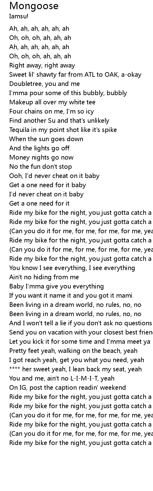 | [01:24.90] | (Can you do it for me, for me, for me, for me, yeah) |