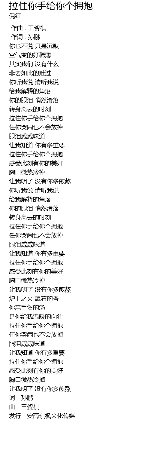 | [01:35.05] | 拉住你手给你个拥抱 |