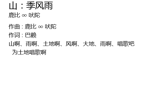 | shān a yǔ a tǔ dì a fēng a dà dì yǔ a chàng gē ba | |