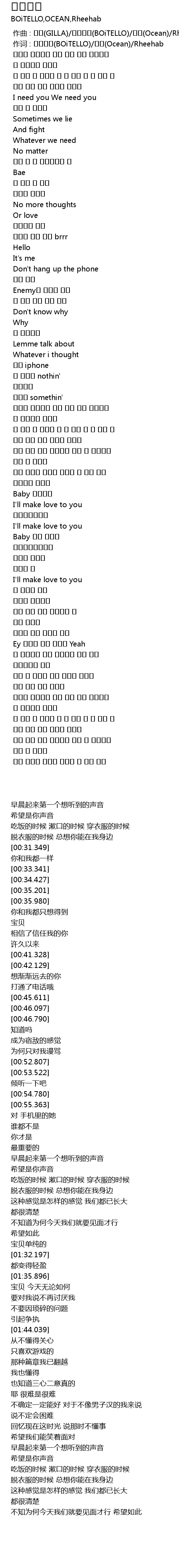 | [00:01.000] | zuò cí : BOiTELLO Ocean Rheehab |