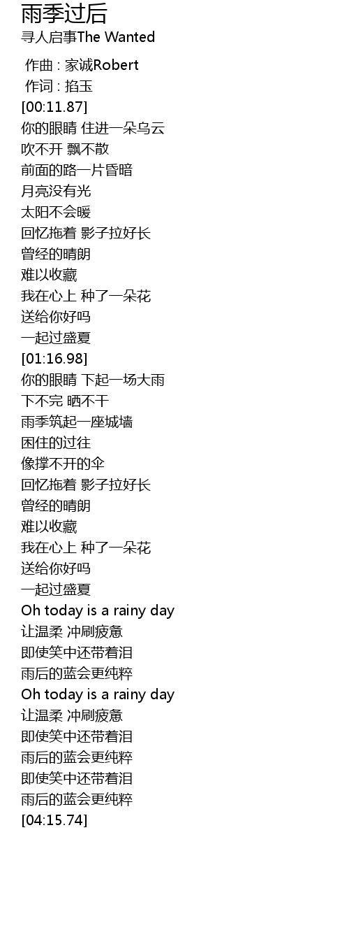 | [00:00.000] | zuo qu : jia cheng Robert |