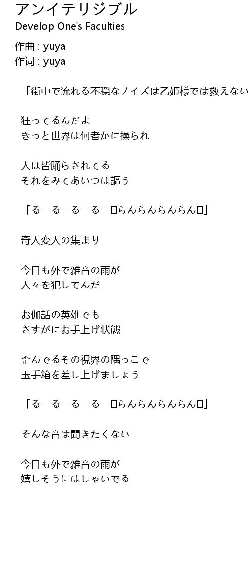 | Song | アンイテリジブル |