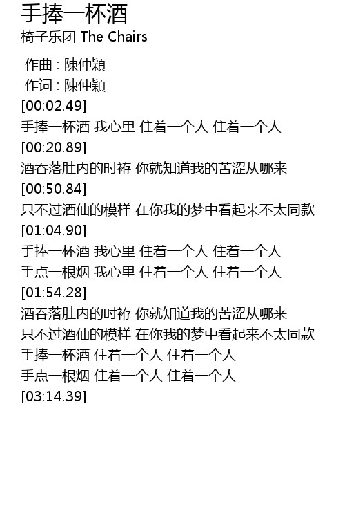 | [02:38.00] | 手捧一杯酒 住着一个人 住着一个人 |