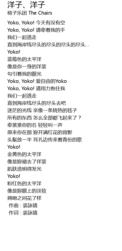 | [00:16] | Yoko, Yoko! qǐng qiān zhe wǒ de shǒu |