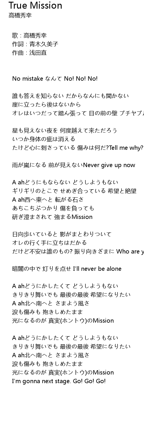 | Song | True Mission |