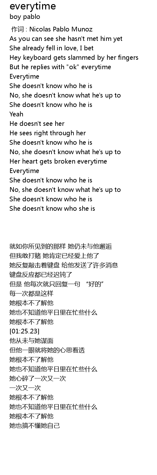 | [02:23.42] | She doesn' t know who he is |