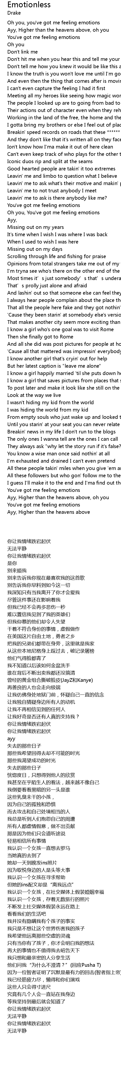 | [00:00.43] | Oh you, you've got me feeling emotions |