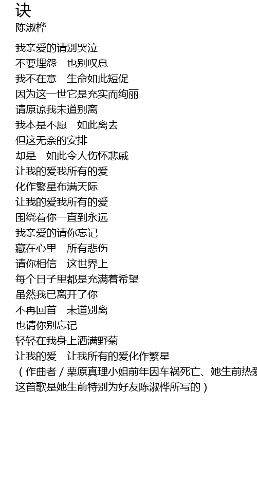 | 这首歌是她生前特别为好友陈淑桦所写的) |