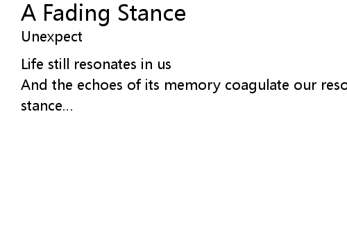 | And the echoes of its memory coagulate our resolve to believe in this fading stance |