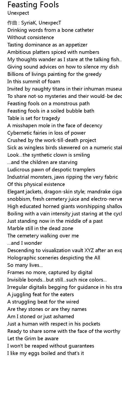 | Song | Feasting Fools |