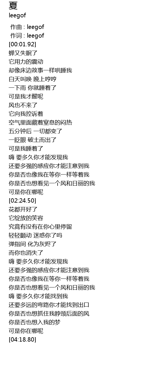 | [00:18.66] | 蝉又失眠了 |