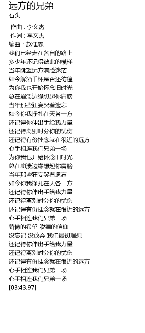 | [03:34.66] | 心手相连我们兄弟一场 |