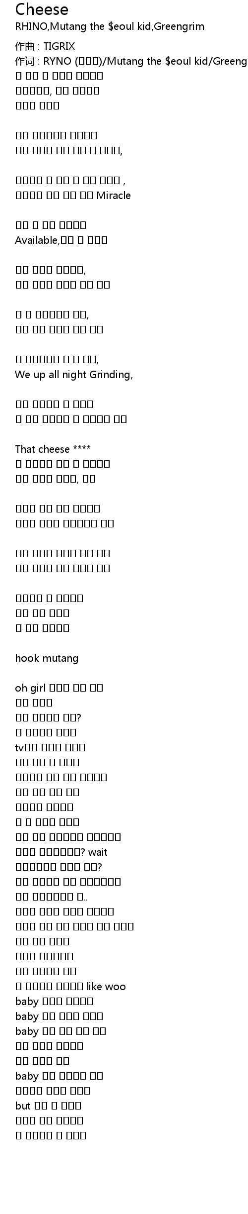| 作词 : RYNO (라이노)/Mutang the $eoul kid/Greengrim | |