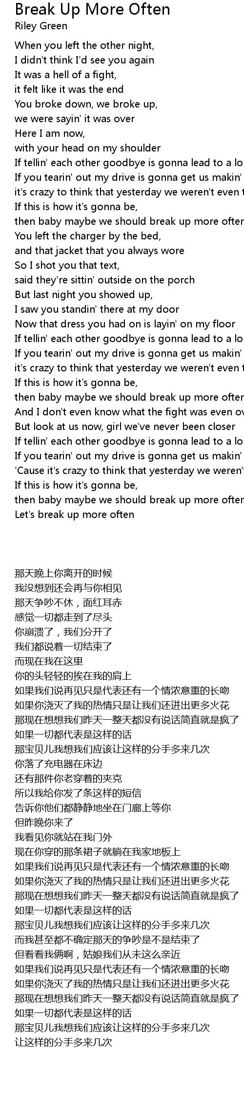 Let's break up more often |
