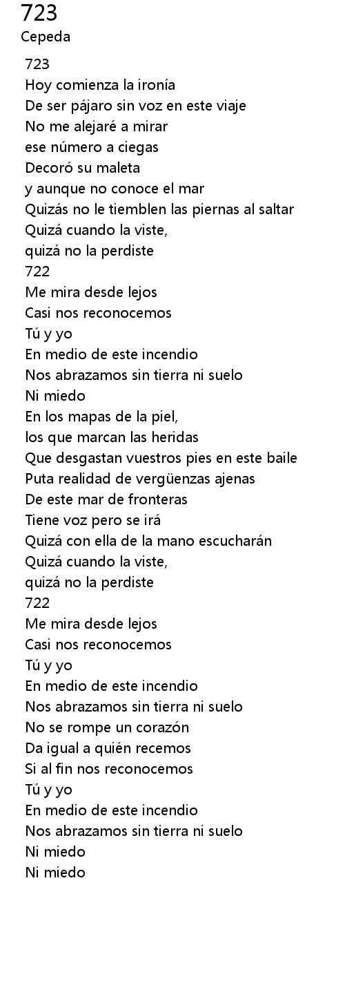 | [00:23.514] | De ser pa jaro sin voz en este viaje |