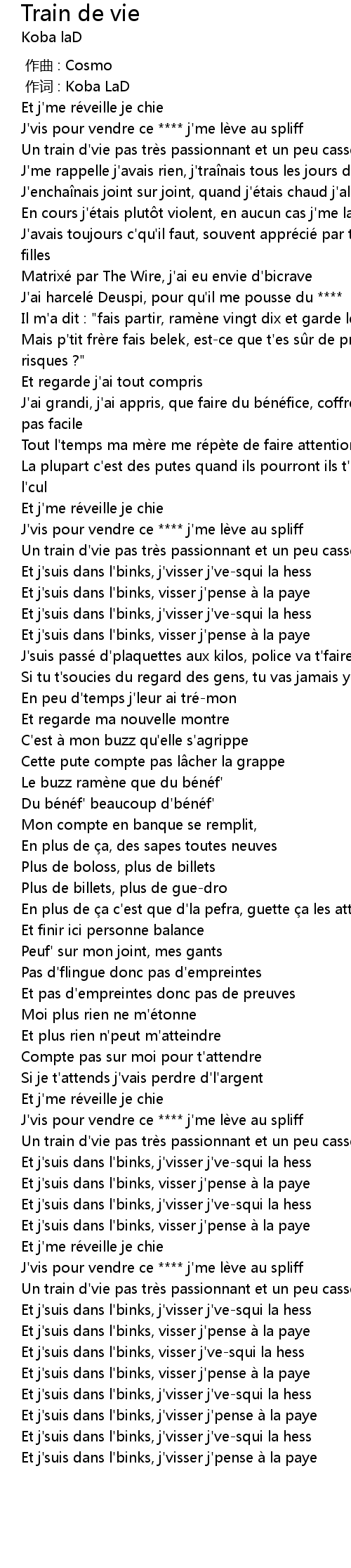 | [01:13.63] | Un train d'vie pas très passionnant et un peu casse couilles des fois |