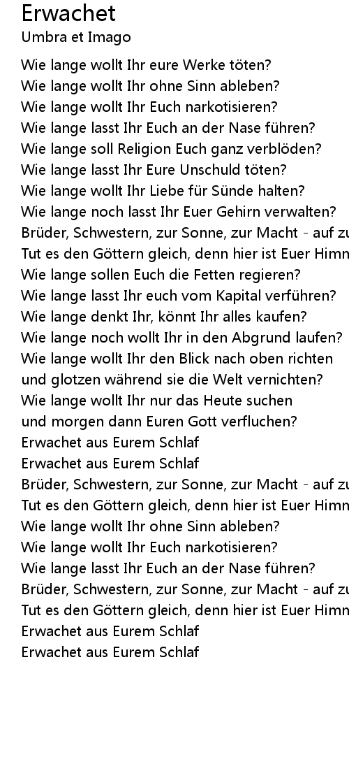 | Brüder, Schwestern, zur Sonne, zur Macht - auf zur letzten Schlacht | |