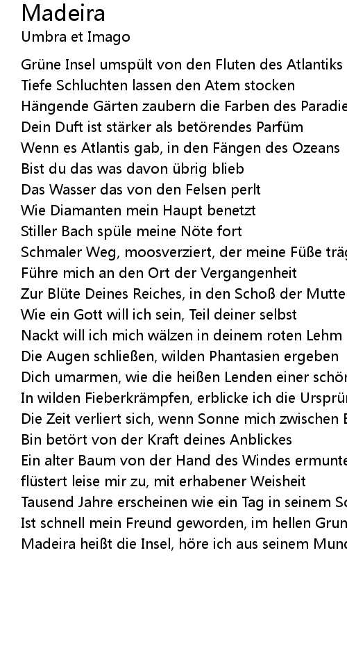 | Madeira hei t die Insel, h re ich aus seinem Mund |