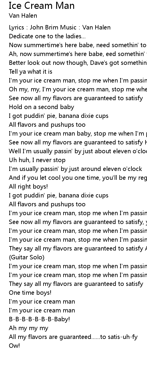 | Oh my, my, I'm your ice cream man, stop me when I'm passin' by | |